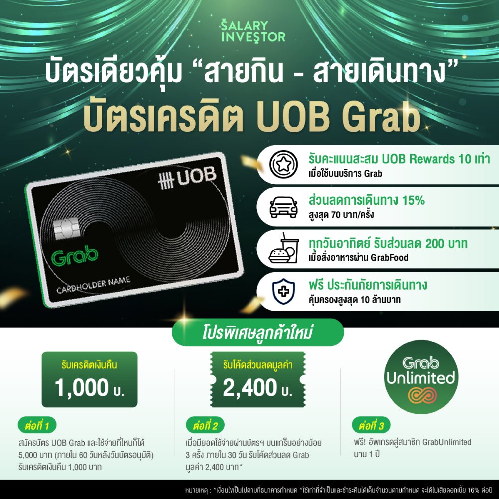 บัตรเครดิต UOB Grab บัตรสายกิน และ สาวก Grab ทั้ง GrabFood และ GrabMart หรือ สายเดินทางผ่าน Grab