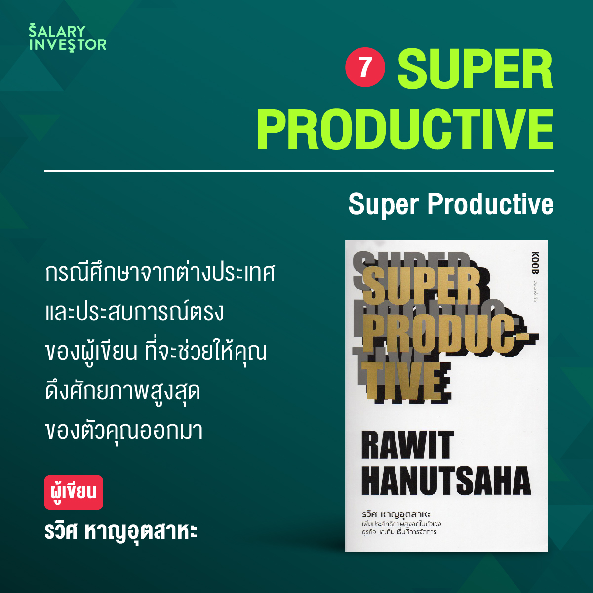 หนังสือเล่มนี้ได้รวบรวมเนื้อหาทั้งจากเคสต่างประเทศ และประสบการณ์ตรงที่ผู้เขียนได้รวบรวมไว้ให้แล้วในหนังสือเล่มนี้ ที่จะช่วยให้คุณเป็นเวอร์ชันที่ดีที่สุดของตัวเองด้วยการดึงศักยภาพสูงสุดของคุณออกมา