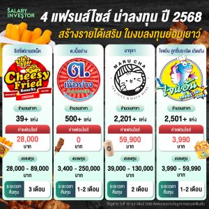 สำหรับคนทำงานที่ต้องการหารายได้เสริม วันนี้ Salary Investor มาแนะนำร้านแฟรนไชส์น่าลงทุน ในราคาย่อมเยาว์