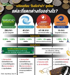 เปรียบเทียบ “โรงรับจำนำ”ยุคใหม่ แต่ละที่แตกต่างกันอย่างไร?