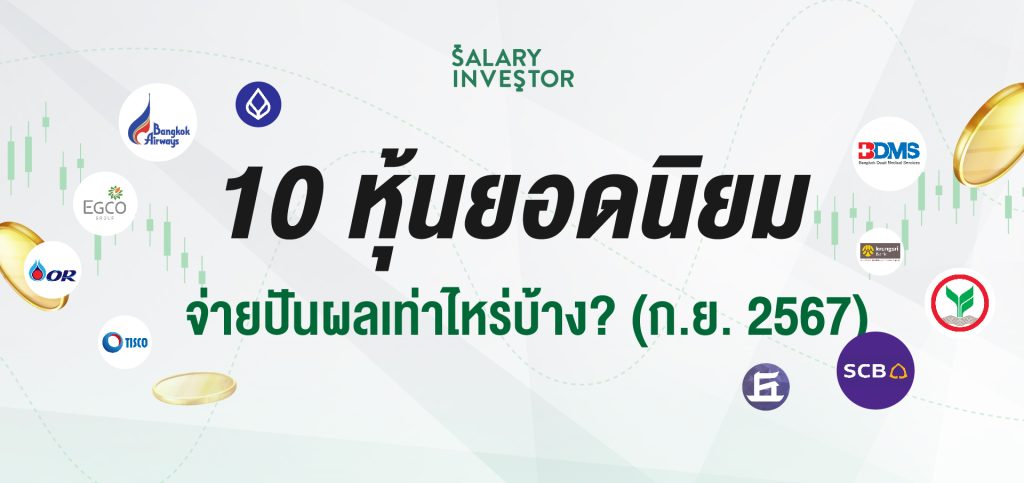 สายหุ้นปันผลต้องดู วันนี้ Salary Investor รวบรวม 10 หุ้นยอดนิยมใน SET ที่กำลังจะจ่ายปันผลในเดือนกันยายน 2567 นี้มาให้แล้ว! จะมีบริษัทอะไรและจ่ายปันผลเท่าไหร่บ้างนะ? หากหุ้นขึ้นเครื่องหมาย XD นั้นหมายถึง เมื่อเพื่อน ๆ ซื้อหลังจากเครื่องหมายก็จะไม่ได้รับเงินปันผลแล้วน้า 1) บริษัท การบินกรุงเทพ จำกัด (มหาชน) – BA : ดำเนินธุรกิจสายการบินในประเทศไทย โด่งดังจากการให้บริการแบบ Full-Service Airline ในเส้นทางการบินทั้งภายในประเทศและต่างประเทศด้วยมาตรฐานการให้บริการที่โดดเด่นและภาพลักษณ์ที่หรูหรา วันที่ขึ้น XD: 4 ก.ย. 2567 วันที่จ่ายปันผล : 19 ก.ย. 2567 ราคาหุ้นปัจจุบัน : 22.20 บาท เงินปันผล (บาท/หุ้น): 0.60 บาท อัตราผลตอบแทนเงินปันผลต่อราคาหุ้น (Dividend Yield) : 2.7% […]